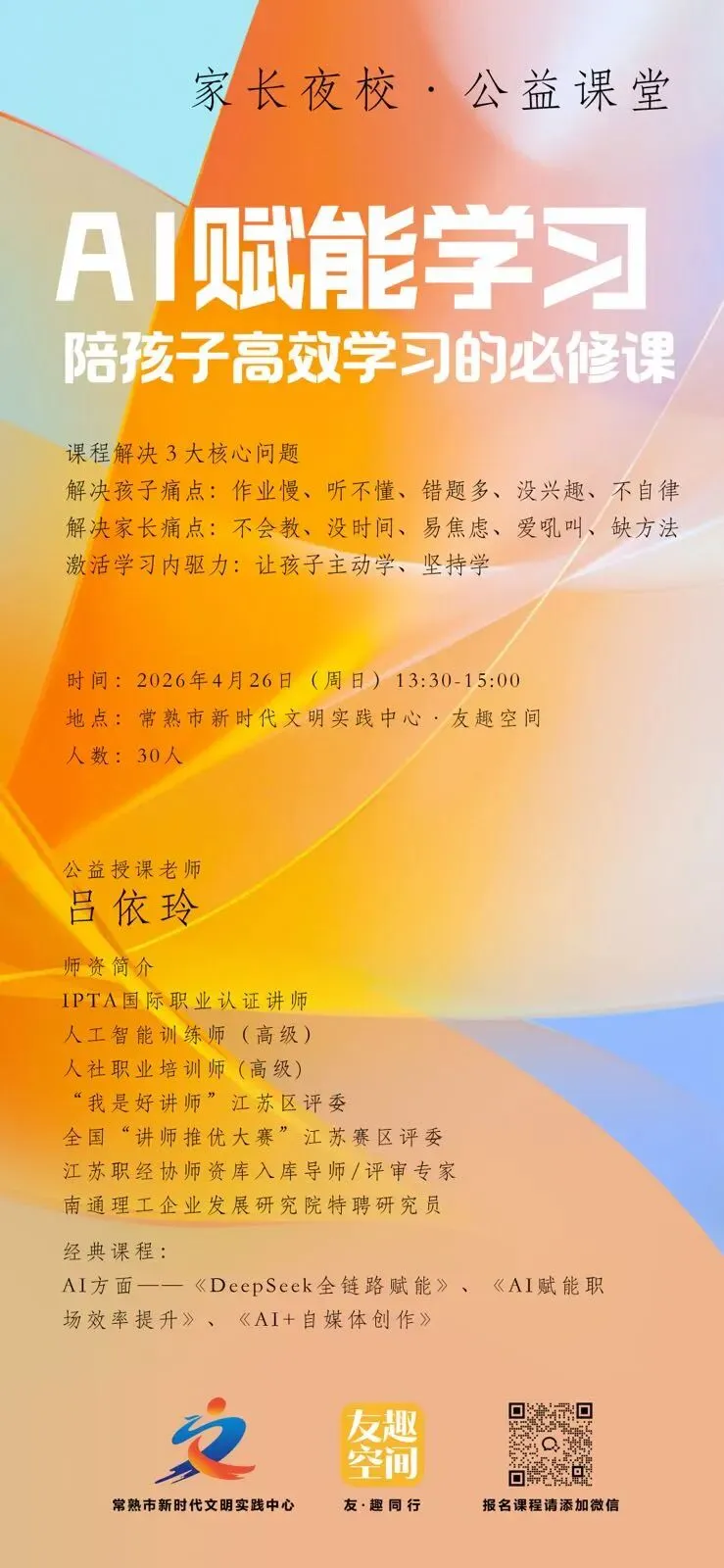 家长夜校公益课|AI赋能学习:陪孩子高效学习的必修课