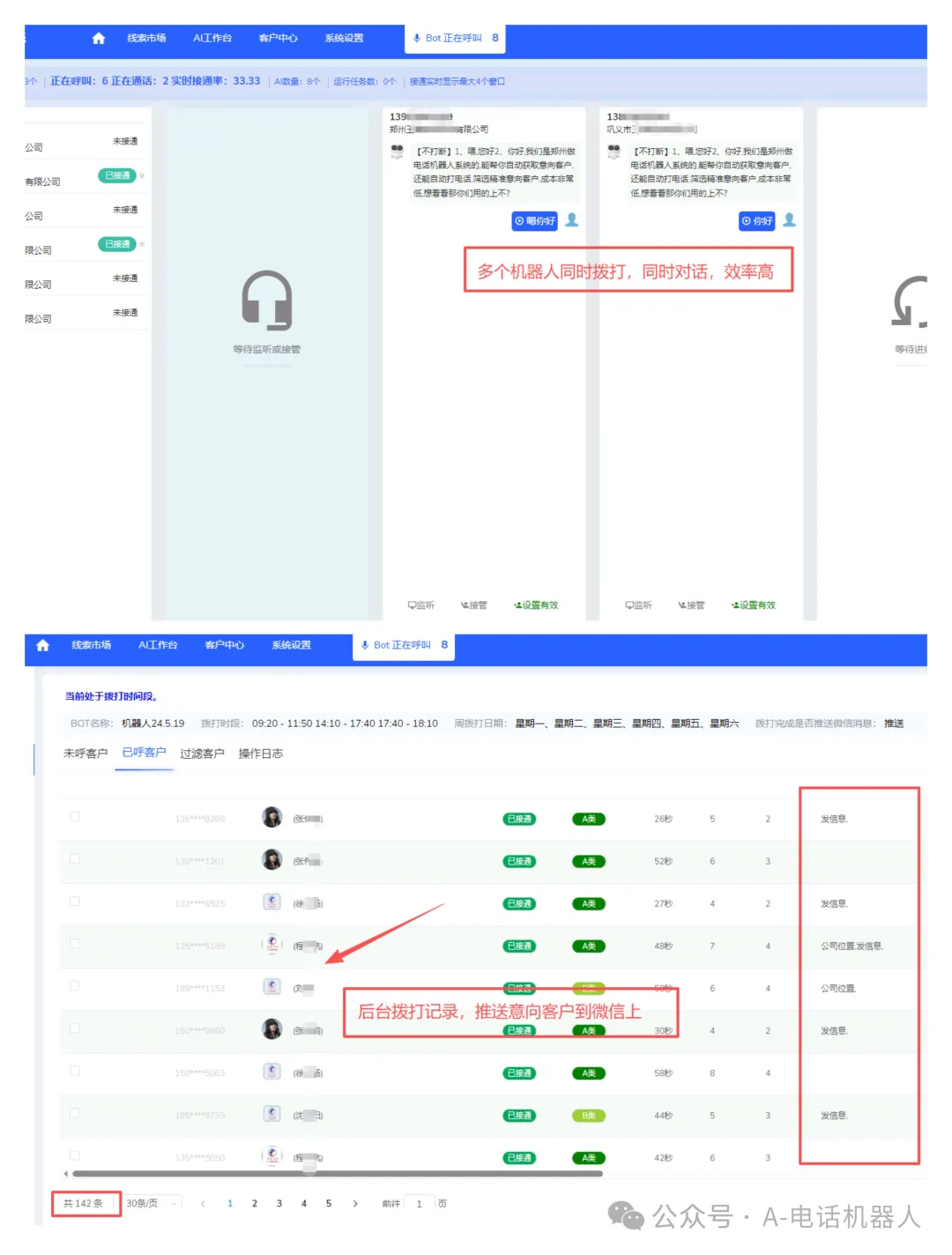 3、人工一天最多200-300通电话,并且很多都是无效号码,而机器人一天可以拨打至少三千通,可以过滤掉无效号,空号等等