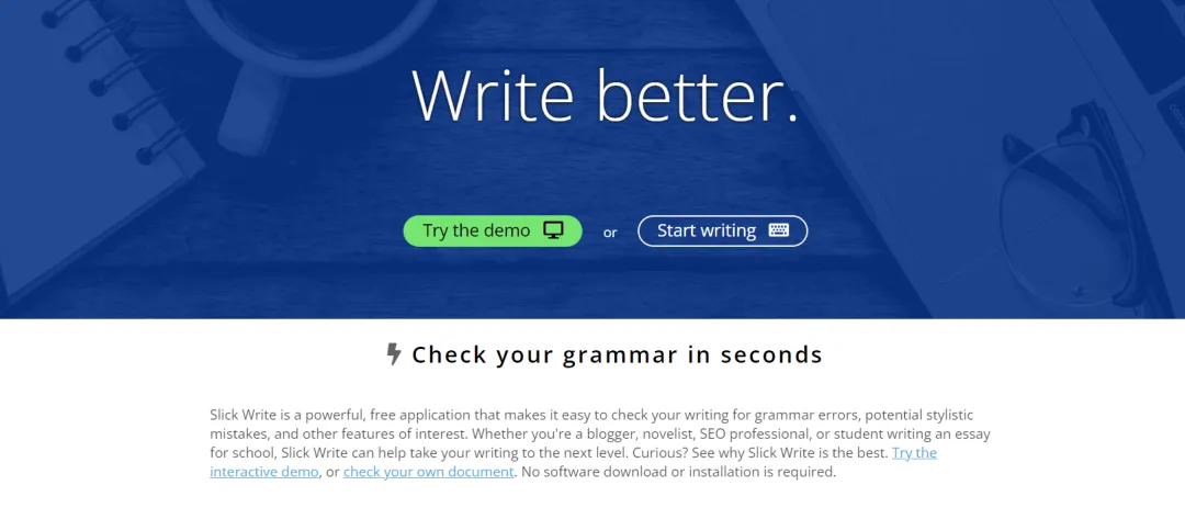 Slick Write主打基础文字筛查服务,适配AI论文写作与AI写论文的内容自查步骤,起到论文辅助作用。逐段检测语句搭配与基础用词,排查浅显书写问题,提升AI生成论文的完整度,降低学术写作的基础失误概率。