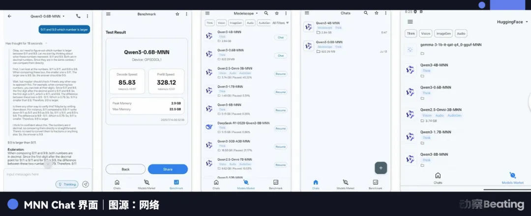 像 MNN Chat 这样的移动端 AI 应用,已经能让用户在手机上本地运行 DeepSeek R1 蒸馏模型。这种端侧 AI 的意义在于,你不需要时刻连着 5G 信号,不需要每个月给硅谷巨头交 100 美元的订阅费。大模型就在你的口袋里,断网也能跑,不用给云端算力花一分钱。