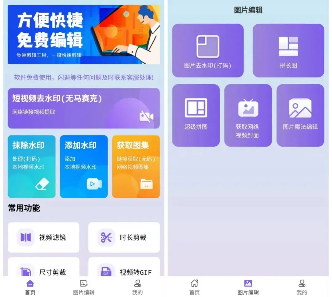 本地视频去水印:点击”抹除水印”,从相册导入视频,框选水印区域(支持调整大小和位置),确认后点击下一步,等待几秒就可以完成。采用的是模糊打码方式去除水印,效果一般。