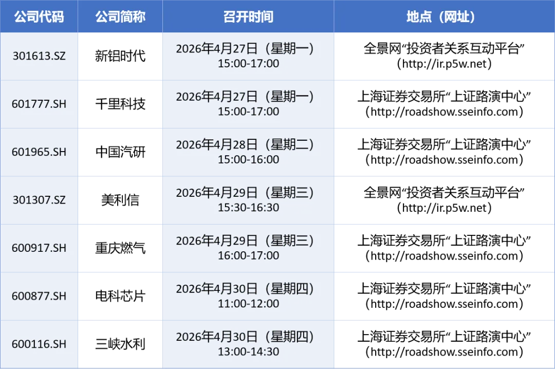 重庆上市公司2025年年报业绩说明会一周预览(4.27—4.30)