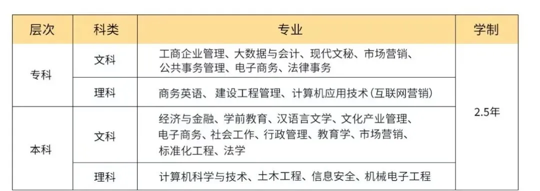 【学籍有效期长】实行学分制,最短学习年限2.5年,学分存入学分银行,学籍有效期为8年。