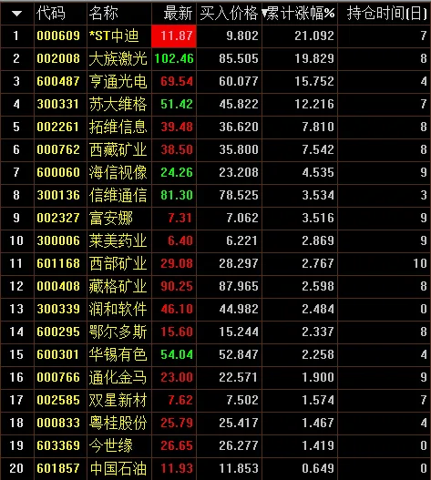 (13号小试基金账户最新持仓标的(时间单位:日)