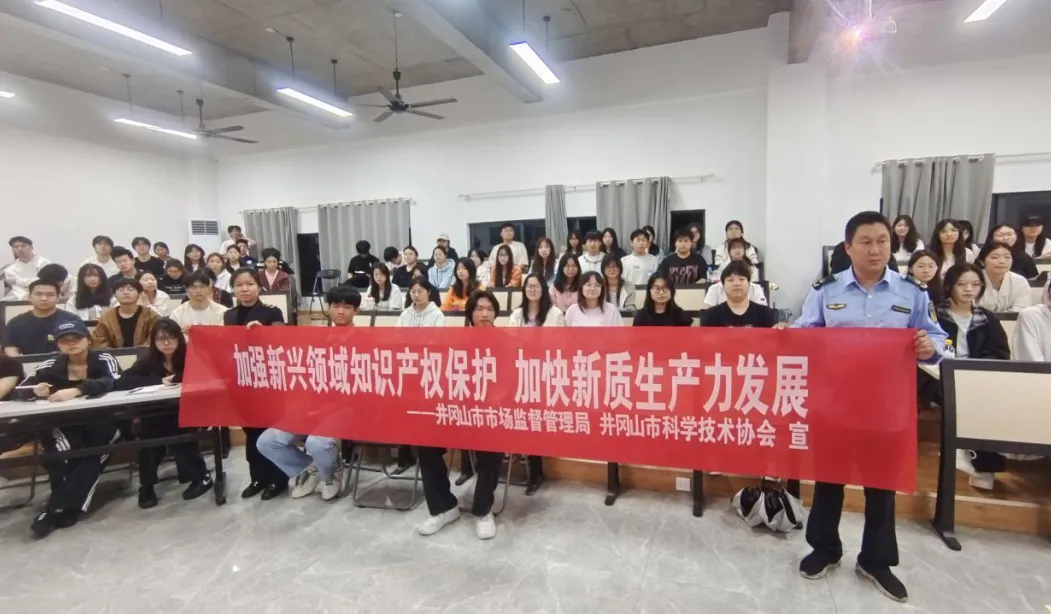 为强化新兴领域知识产权保护,激发高校创新活力,近日,井冈山市科学技术协会联合市市场监督管理局,走进江西软件大学,举办“加强新兴领域知识产权保护 加快新质生产力发展”主题宣讲活动。近300名师生及科研团队代表参加。