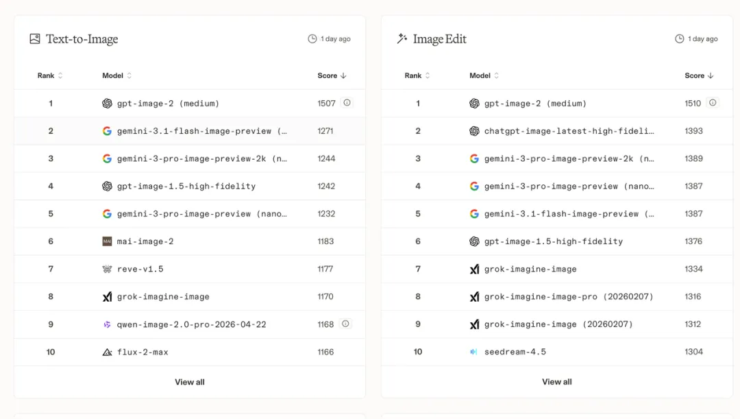 Arena 有多个细分类别的排行榜: