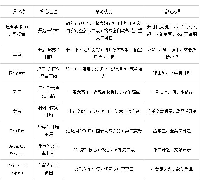 实测 8 款工具后我真心推荐:逢君学术 AI 开题报告工具(https://www.fengjunxueshu.com/openingReport?lz=aiktbg324-gzh),输入标题就能出完整规范稿,文献真实、格式标准、大纲可自由调整,让你轻松搞定开题,一次通过导师审核,顺利开启论文之路!