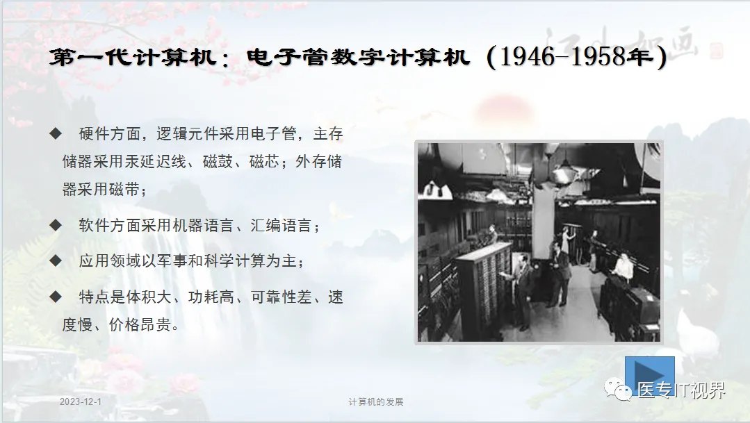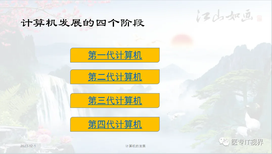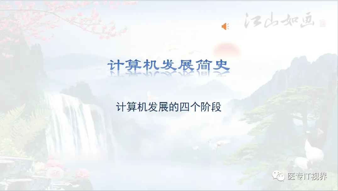 4、第一张幻灯片标题为“计算机发展简史”,副标题为“计算机发展的四个阶段”,在该幻灯片中插入文件夹中的音乐“music.mp3”,把该音乐设为背景音乐。