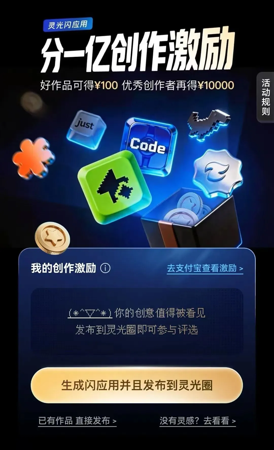 不管你是做出爆款实用AI应用的创作大神,还是随手制作小众创意小工具的普通玩家,只要作品合规、完成基础创作,就有机会领取奖励,多做多得、优质优奖。