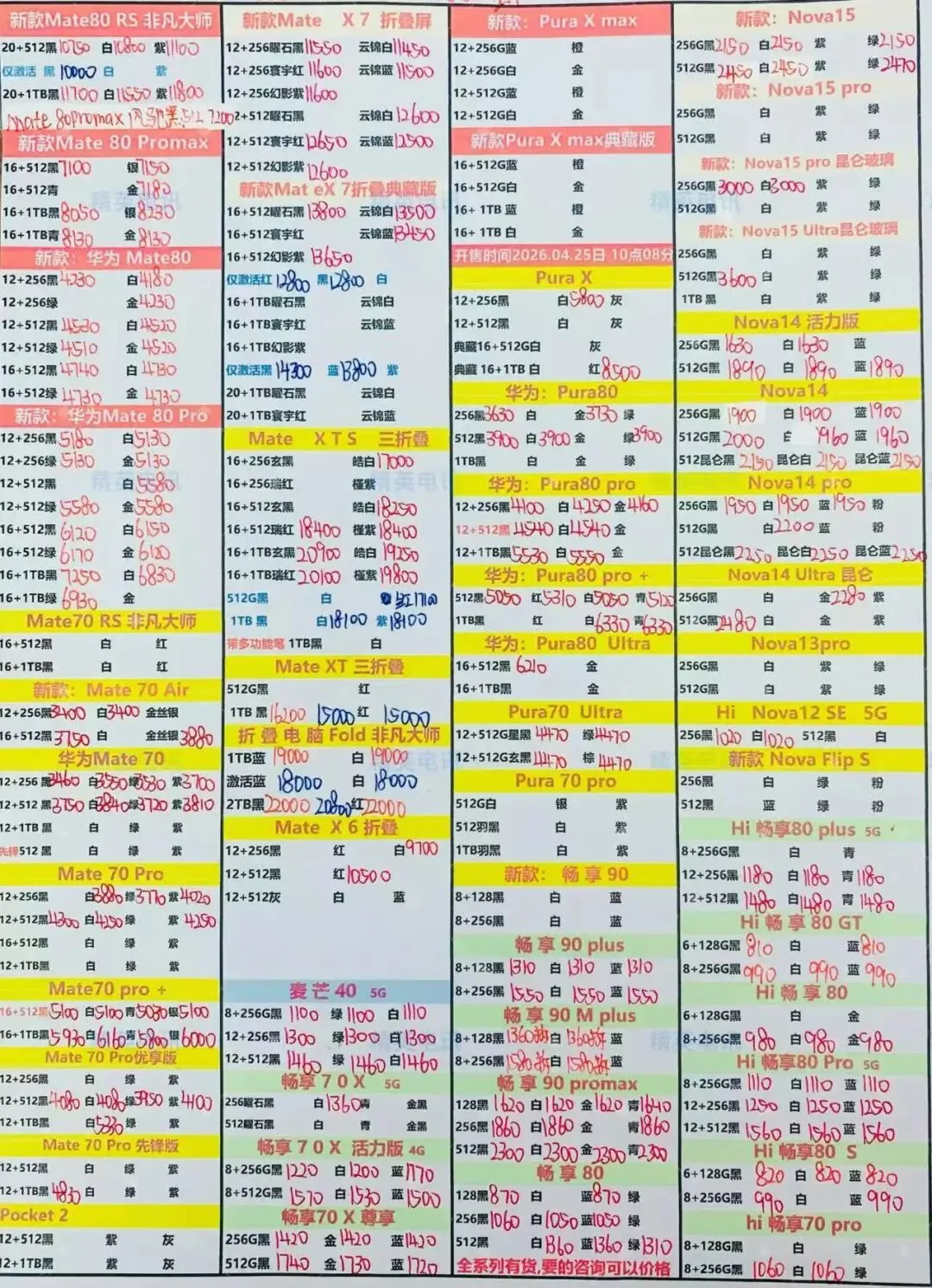 【2026年4月24日报价】深圳全新安卓手机、平板等产品批发报价