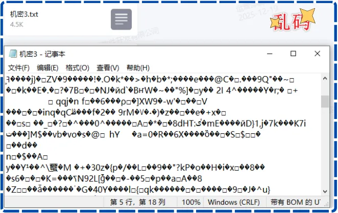 员工在公司电脑上干活,跟平时一模一样,不影响正常办公,文件会自动、强制加密。一旦这个文件被偷偷传出去,文件立马变成一堆乱码,根本打不开。