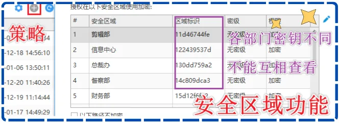 设置部门之间的访问权限,手执不同密钥的部门之间,文件是不互通的。