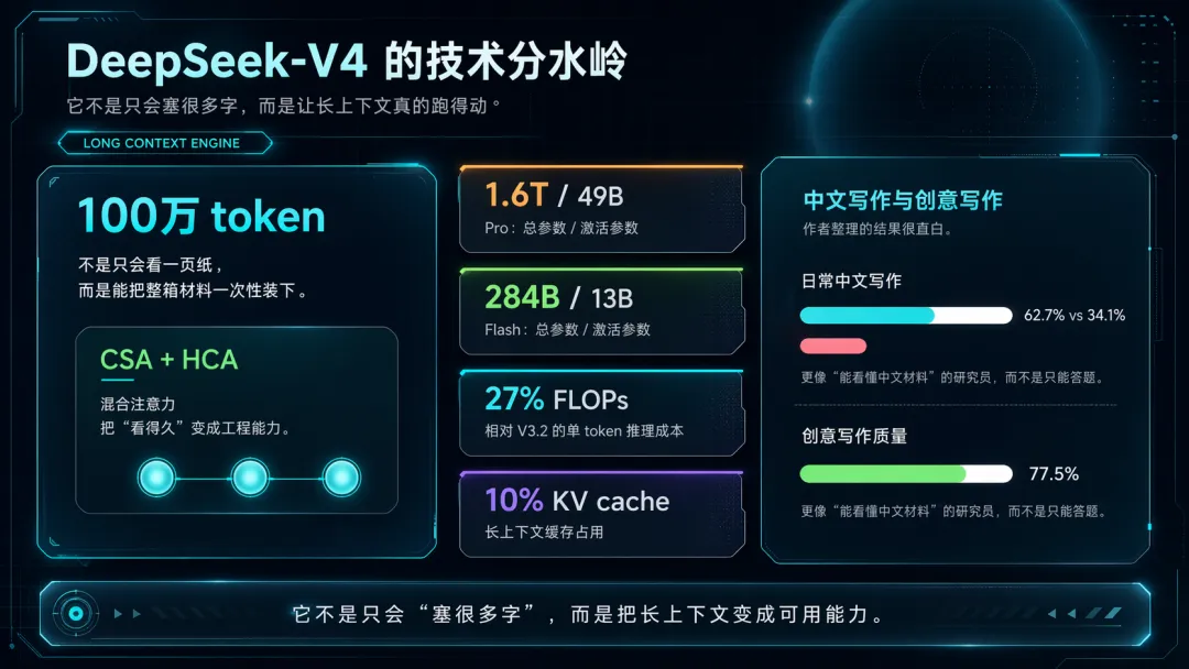 如果说 GPT-5.5 的关键词是“推进”,那 DeepSeek-V4 的关键词就是“装得下”。