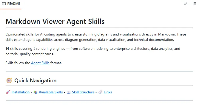 最近看到一个项目,叫 Markdown Viewer Skills。