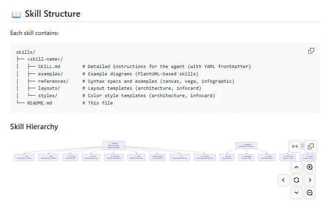 对开发者来说,用法大概就是:把技能装进去,然后在写文档时直接让 AI 生成对应图表。