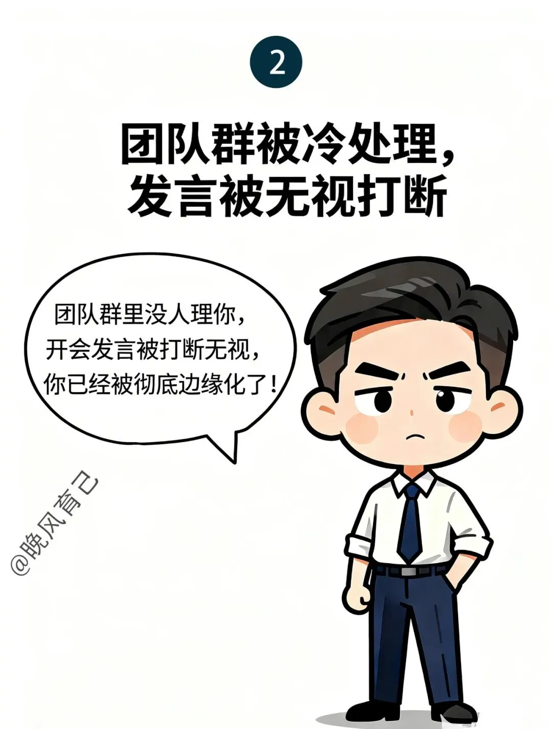 - 团队被冷处理、发言被无视:在群里发消息没有人回复、开会发言的时候也会被打断无视,这就说明你已被团队边缘化,话语权和存在感正在被慢慢的剥离。