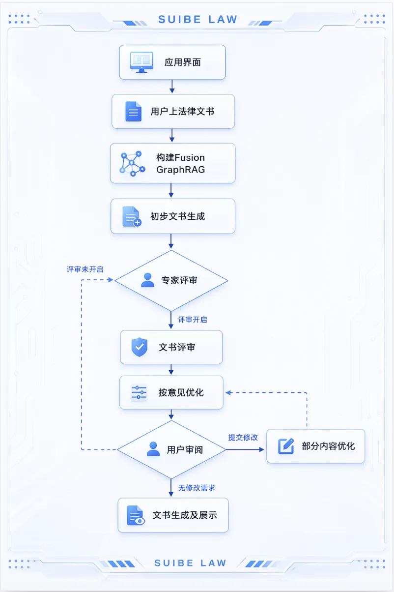 本项目以法学方法论与法律推理逻辑为根基,将要件事实型民事裁判论作为核心理论支撑,把法律要件与事实要素层级对应,为破解大模型个案认知难题、防控模型幻觉提供刚性知识约束与标准化框架。项目结合GraphRAG与Agent技术构建法律论证系统,形成适配司法场景的智能辅助审判方案。