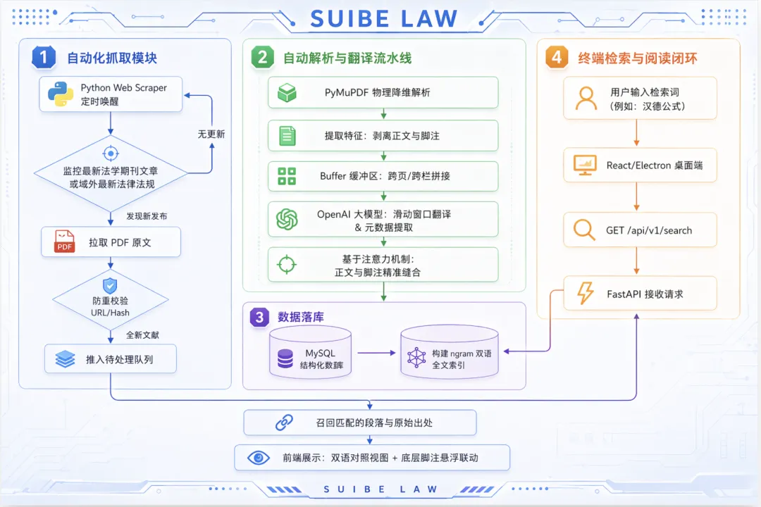 2.构建数据飞轮与闭环验证机制:采集权威法学期刊开放获取文献构建 “原始文献-结构化金标准” 对比数据集,通过正文论述与脚注的语义支撑关系自动校验,结合专家/高阶大模型打分反馈微调解析流水线超参数。