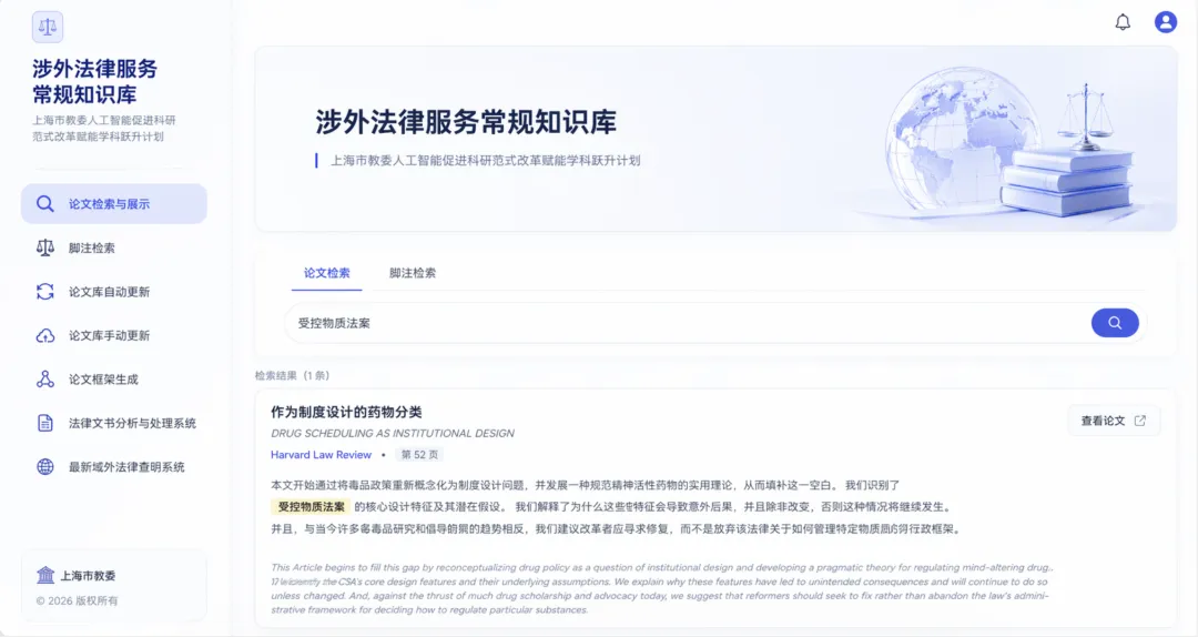 1.跨语言法理精准处理与检索:优化AI模块,实现数学符号与法理逻辑的关联识别,可将非结构化英文判例/论述提炼为结构化要素,建立跨语言深层索引,支持中文检索精准召回英文原典及脚注。