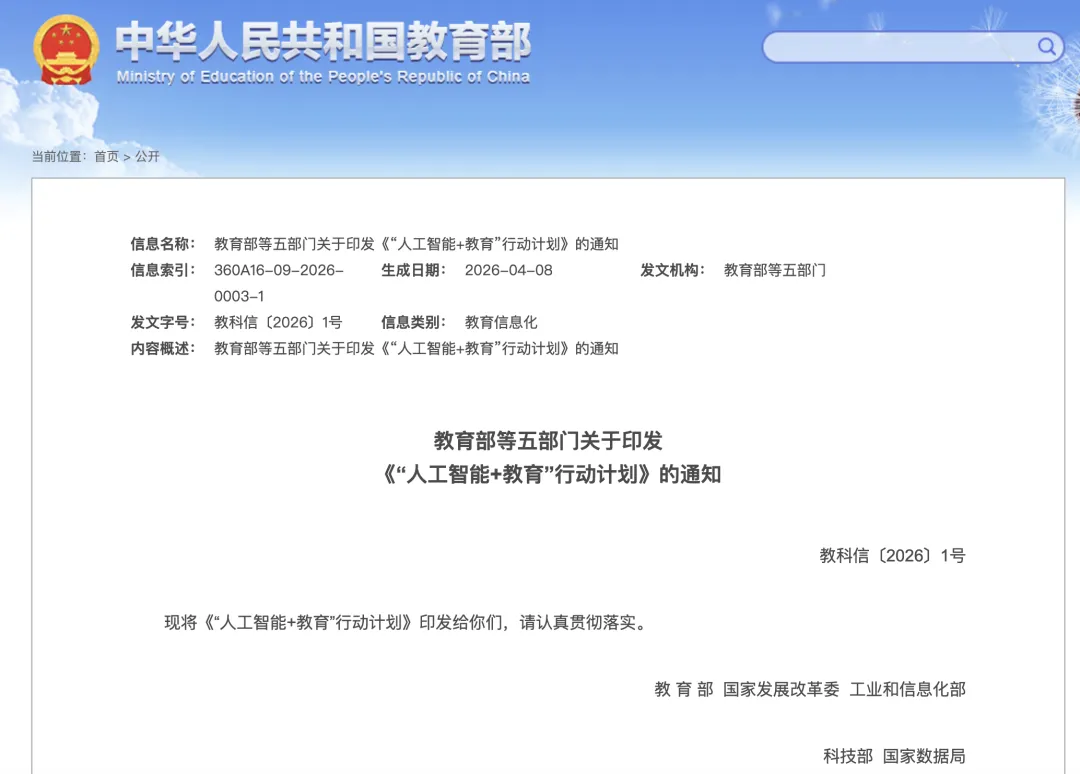 如果说过去几年,人工智能还只是“进入课堂”,那么这一次,它被正式写进了教育体系的底层结构之中。从中小学到高等教育,从教师培养到教育治理,一场系统性的重构已经开始。