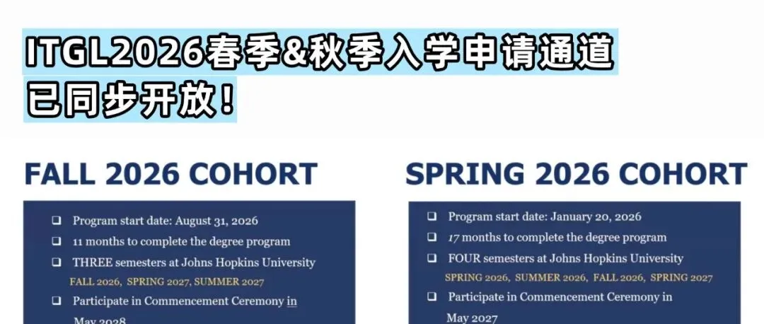 目前,ITGL2027春季入学申请通道已经开启,欢迎大家申请!如对该专业或项目有任何疑问,欢迎随时咨询我们!