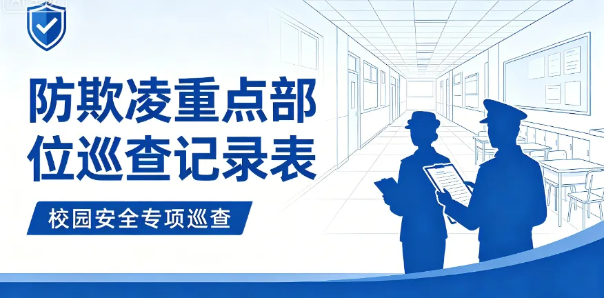 今天分享的资源是《防欺凌重点部位巡查记录表》,该表格为是规范开展防欺凌巡查工作、留存巡查痕迹的重要工具,整体结构清晰、内容全面,适配校园等场景的防欺凌巡查需求。