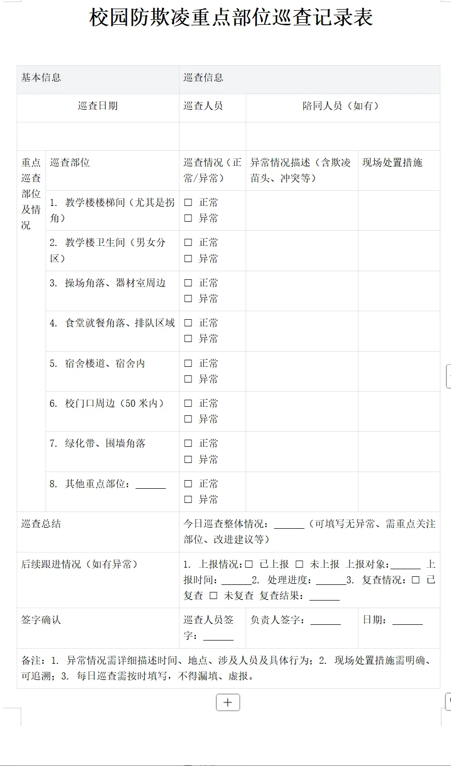 「校园防欺凌重点部位巡查记录表.docx」,点击链接或复制整段内容,打开「夸克APP」即可获取。