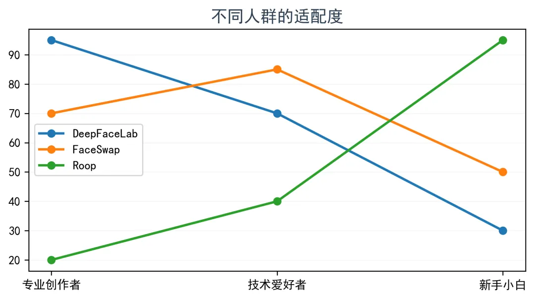 适合有一定技术基础的爱好者,想做一些进阶的换脸内容,但是又不想花太多时间学DeepFaceLab的人。