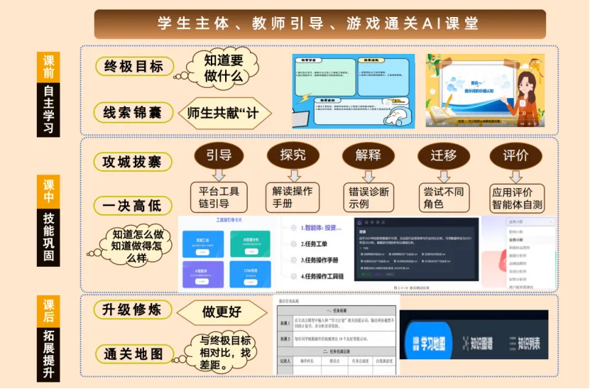 课中:锁链引导 → 手册指引 → 错误诊断 → 角色扮演 → 智能体自测,五步逐层攻城拔寨