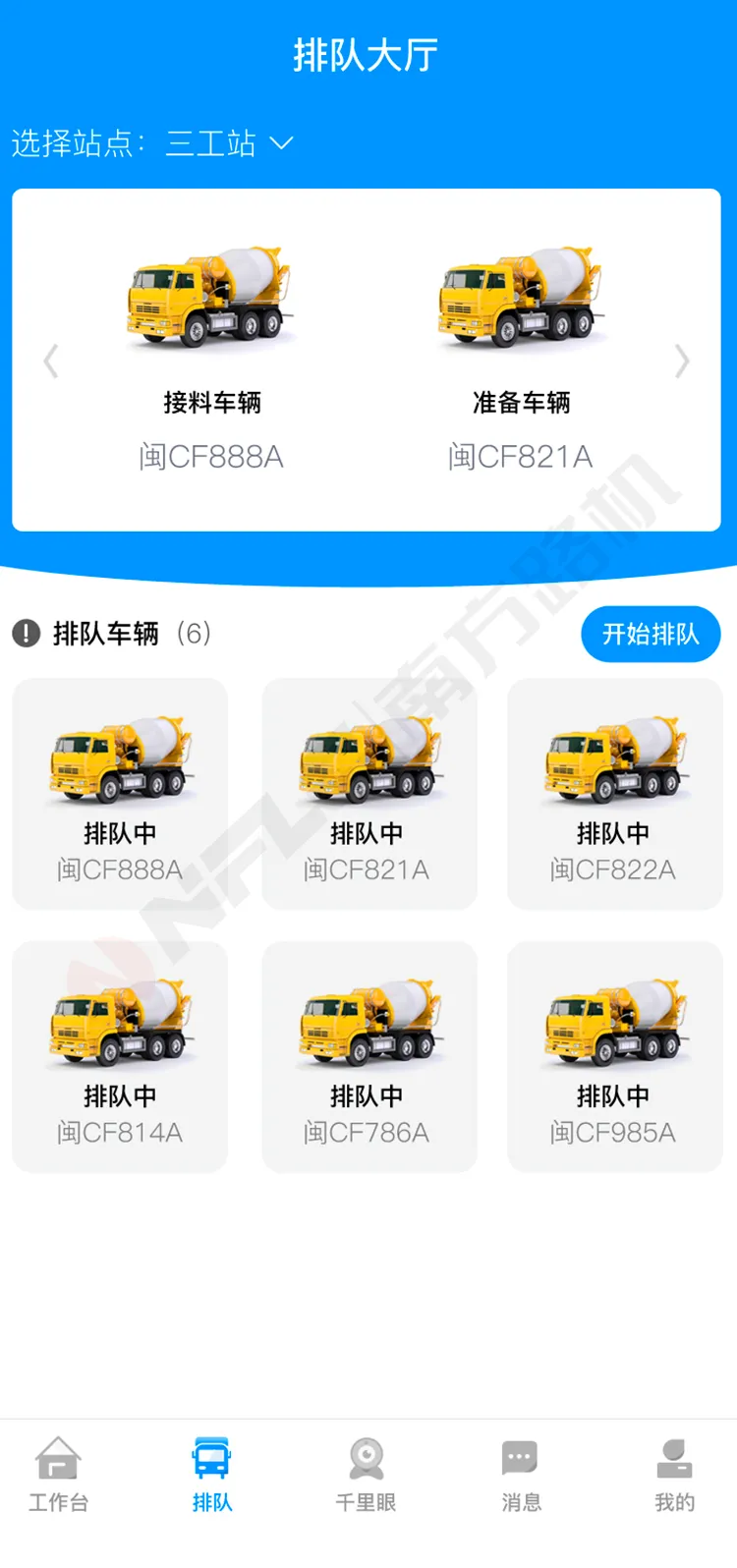 搅拌站遇到生产旺季常常需要调度第三方物流公司车队进行协助。传统模式下,车队管理混乱、车辆插队时有发生,司机与司机、司机与生产、尤其是与调度间的矛盾更是难以调控。同时,传统搅拌站人工叫号效率低、通知不到位、司机拖延等各种原因,又容易导致接料不及时,一车延误,车车误。