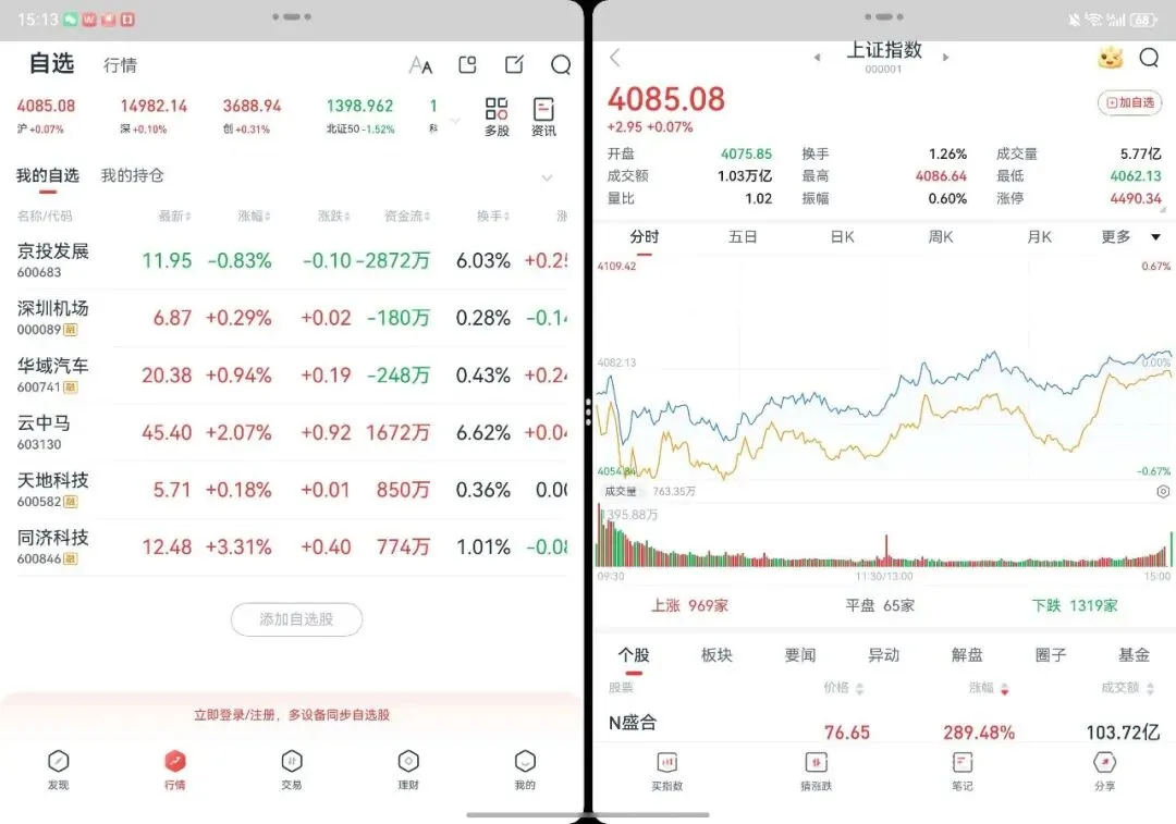 依托华为Pura X Max 7.7英寸超大内屏与16:10黄金阔屏比例,君弘APP重构金融服务交互逻辑。展开大屏后,K线图、行情盘口、财务数据可一屏呈现,告别小屏反复滑动的繁琐,走势细节、板块动态一目了然,助力高效复盘不遗漏关键信息;同时支持多窗口分屏操作,可实现查看实时行情、分析研报资讯、执行交易操作并行处理,让投资决策更从容。针对折叠屏内外屏切换、横竖屏转换,君弘APP也做了深度优化,适配全新玄武水滴铰链开合逻辑,确保页面无卡顿、无变形、无拉伸,实现内外屏无缝衔接的丝滑交互;更深度融合鸿蒙系统级安全能力,强化账号保护、交易加密、隐私防护,搭配大屏专属防窥适配,敏感信息智能遮罩,让每一次投资都更安心。