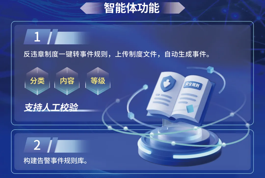 以 “科技创新守护生产安全,智慧力量点亮万家灯火” 为使命,构建主动感知、智能研判、自动响应的全新安全管控体系。作为安心・安全系列智能体矩阵核心成员,制度转换智能体联手隐患诊断、场景研判、考核通知等智能体,覆盖事前预防 — 事中管控 — 事后追溯全链条,让安全制度落地见效,守护生产一线全域安全。