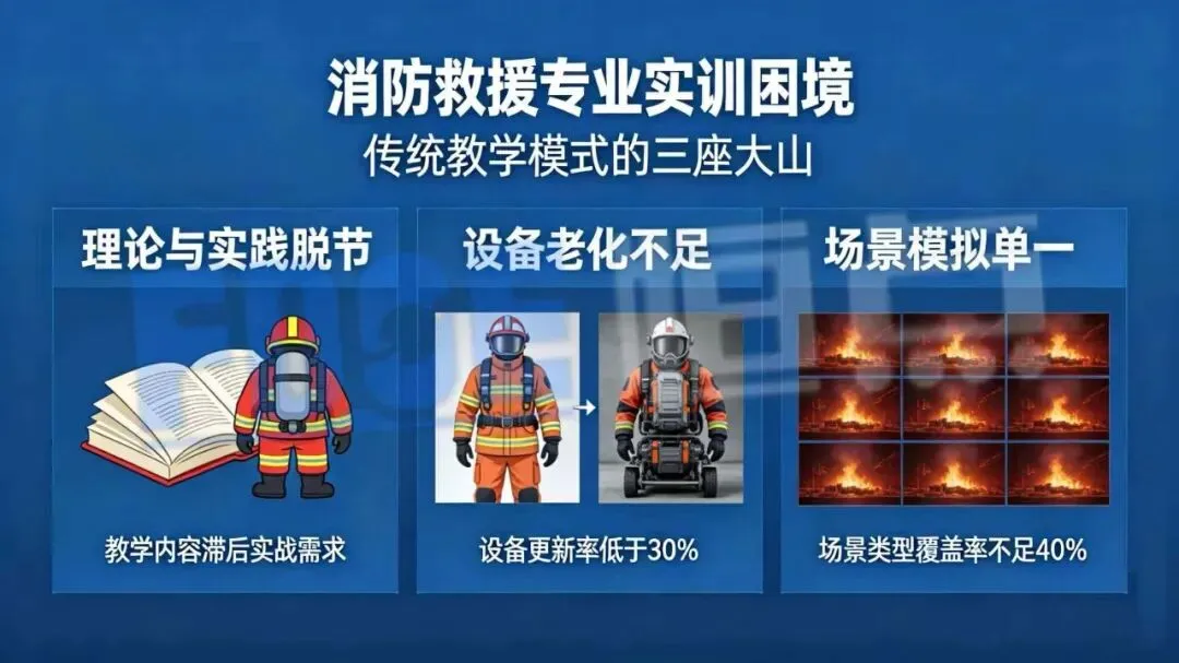 对职业院校消防救援专业的学生而言,传统实训教学长期存在三大痛点,严重制约了技能水平的真实提升。