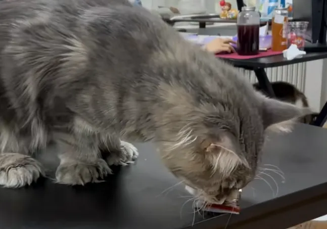 医院接诊这类吃坏的猫咪,是平时的好几倍。可以允许猫咪上桌,但绝对不能让它抢人吃的,一定要分开喂食,既保护猫咪健康,也顾及家人感受。