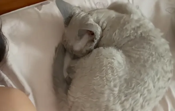 6、睡觉霸占你枕头、还扇你脑袋,纯纯是被你惯上天了。狗狗上床都会乖乖待在脚边,把安全的位置留给主人,猫咪这么干。