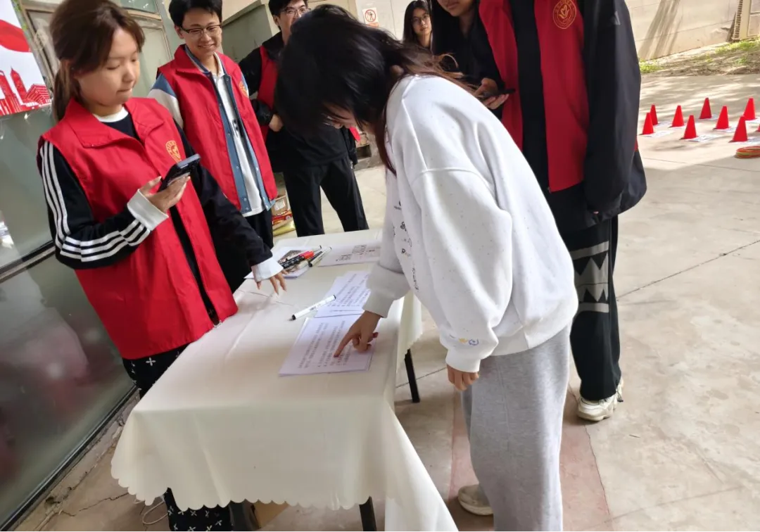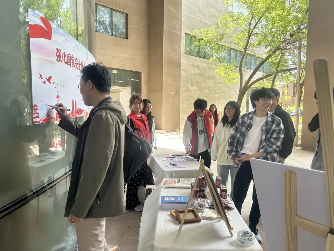 国家安全承诺墙前,师生郑重签名,许下“维护国家安全,从我做起”的誓言;一张张签名汇聚成责任与担当,国家安全知识小卡片同步发放,将安全知识带在身边。