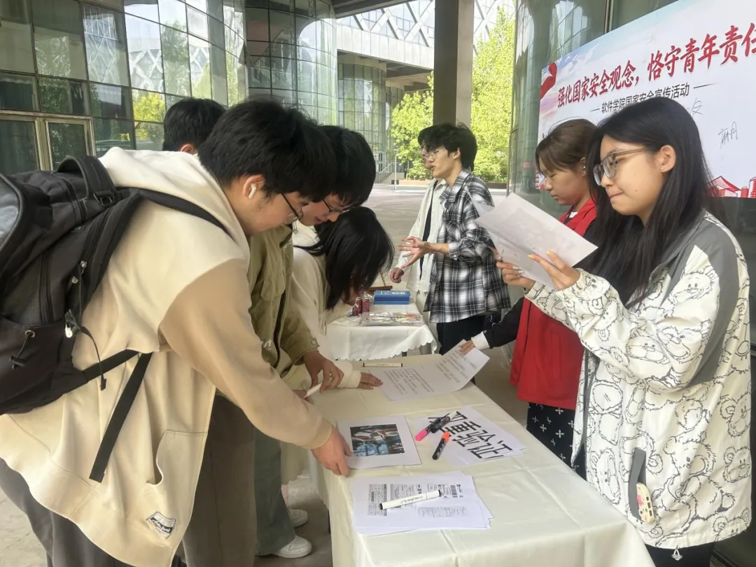 为深入学习贯彻总体国家安全观,提升全院师生国家安全素养与风险防范能力,2026年4月22日,软件学院在软件园前广场成功举办“强化国家安全观,恪守青年责任担当”国家安全宣传活动,趣味互动与实用知识相结合,让国家安全理念深入人心,营造出人人懂安全、守安全的校园氛围。