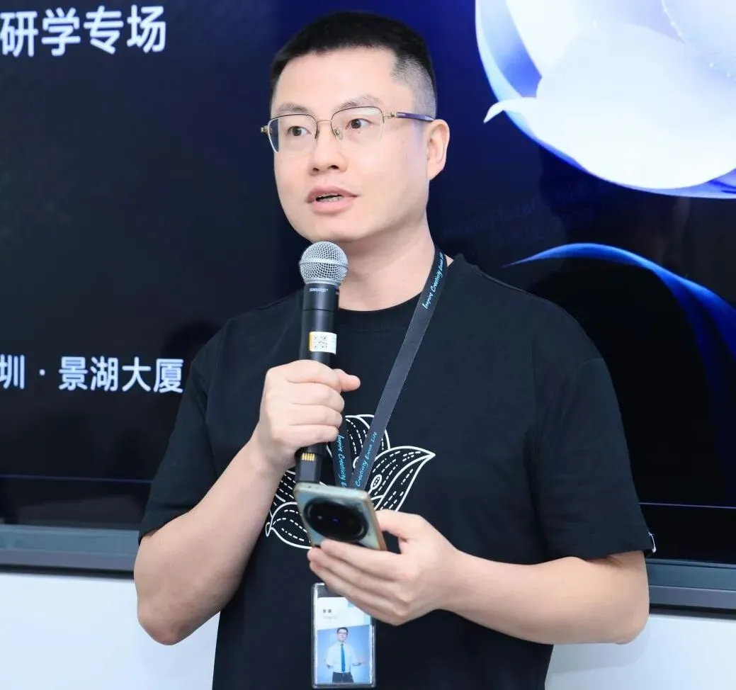 随后,深商AI+工业互联网联盟主席、中国电子科技委原副主任朱立锋在发言时分享了自身的AI使用体验与行业洞察。他坦言自己日常高频使用AI工具,对AI工具的实用价值深有体会。朱主席认为,“深商创新营AI研学专场”此类型活动有助于切实推动广大企业家尤其是年轻企业家与成长型企业,对接拥有优质资源的头部科技企业,快速融入人工智能发展浪潮,充分释放AI技术带来的发展红利。同时他也特别提醒,企业在拥抱AI的过程中,必须高度重视信息与数据安全问题,始终保持审慎态度,筑牢AI应用的安全防线。
