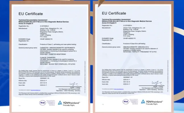 近日,安旭生物(688075.SH)旗下两款核心居家自测产品血糖监测系统与男性生育SP10居家检测试剂,成功获得欧盟成功获得欧盟CE MDR认证。
