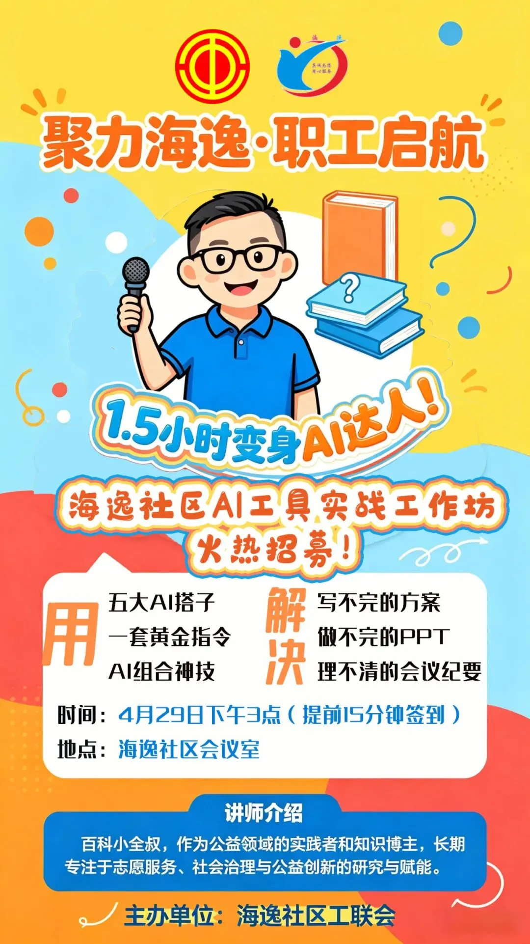 工会赋能丨海逸社区AI工具实战工作坊活动通知