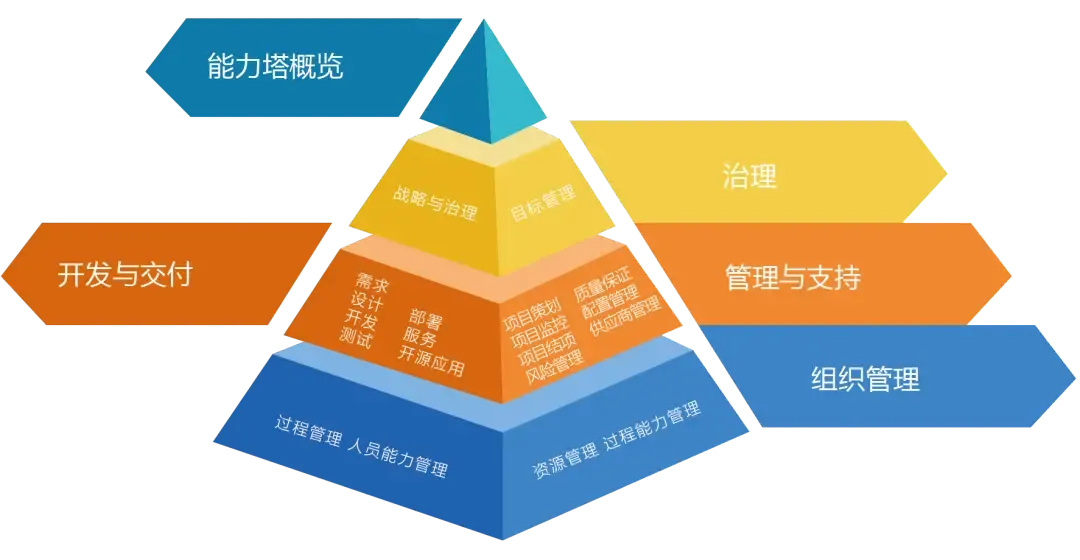 核心内容为四大能力域(战略与治理、开发与交付、管理与支持、组织管理)、20个子域(覆盖软件生命周期的各个方面,总结了国内软件企业的最佳实践)、197项能力要求(具体、可操作的要求,指导企业改进软件过程)。