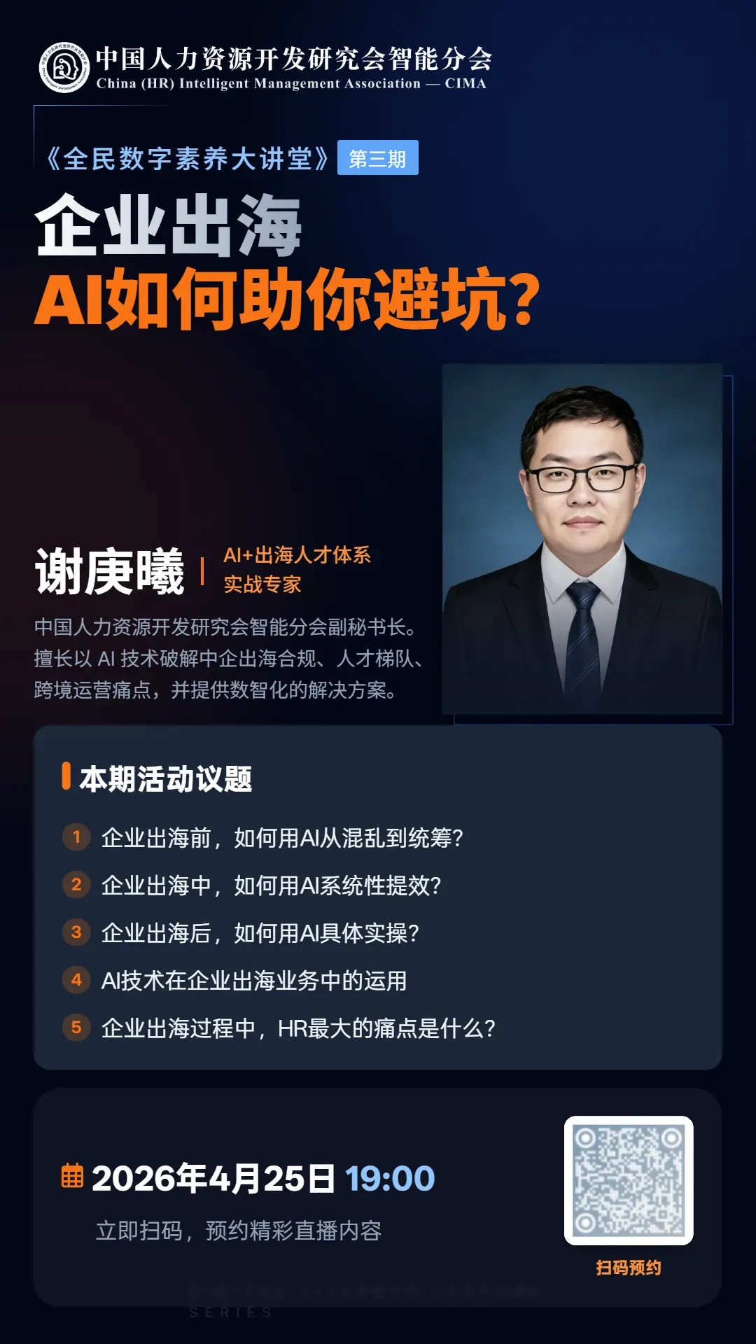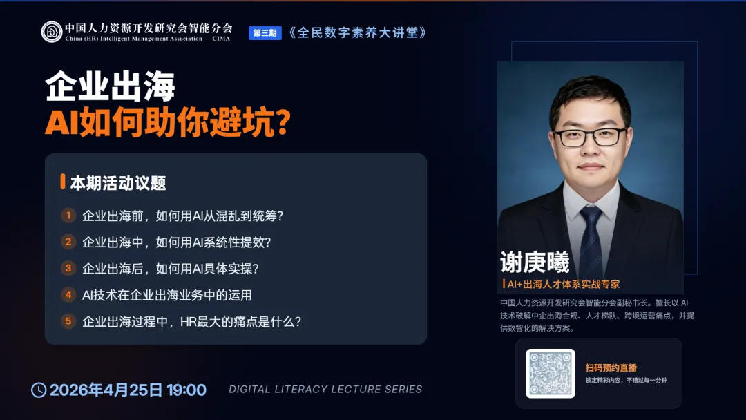 4月25日晚7点,让我们跟随谢庚曦先生一起,用AI武装头脑,开启中国企业全球化运营的数智化新篇章。