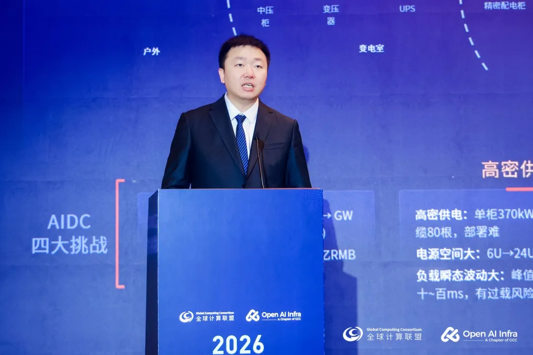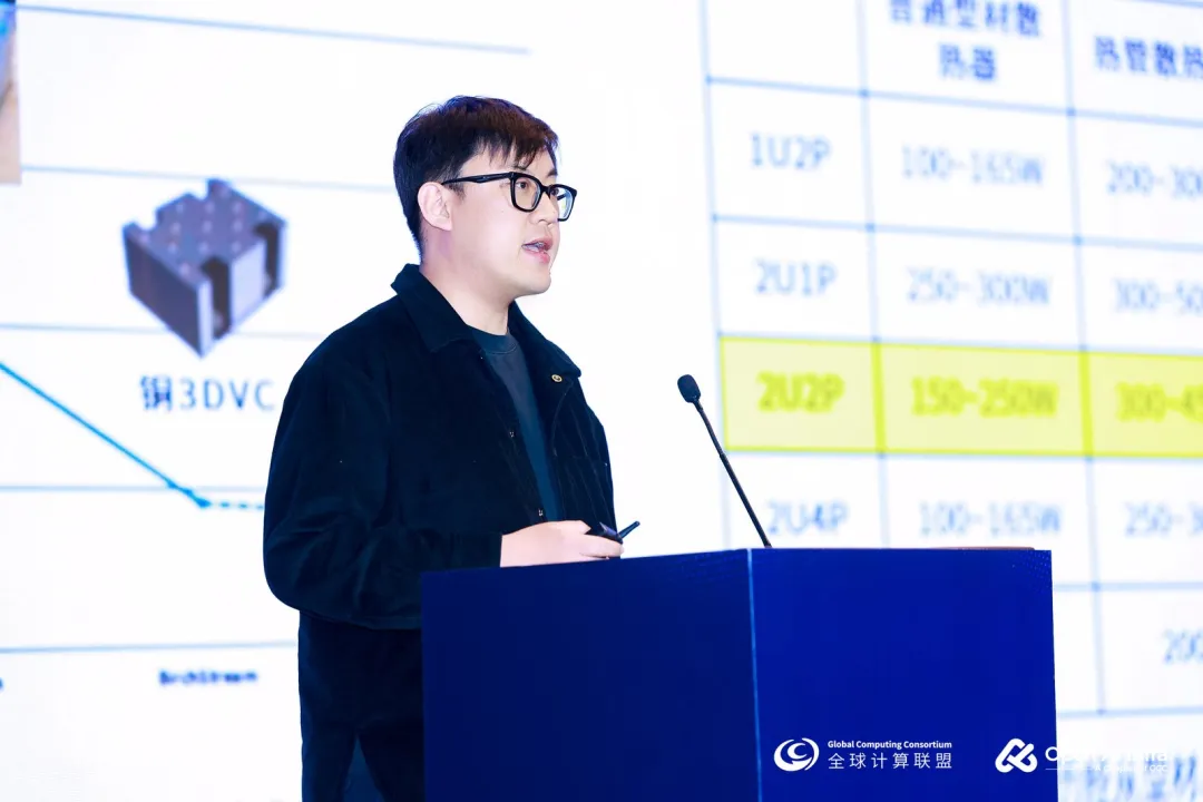 黄斯浩围绕智算整机柜全液冷升级提出,单机柜功率突破百千瓦级,全栈液冷成为智算中心必选技术,单一产品思维无法适配全栈液冷落地需求,全链条、全场景、全生命周期能力是核心关键。当前全栈液冷面临高密散热与可靠性失衡、产品碎片化、全链条验证缺失等挑战,制约整机柜高效交付。英维克以三全理念构建全栈液冷解决方案,芯片级采用射流冷板解决高热流散热痛点,节点级研发双流道低流阻快接降低系统损耗,机柜级推出适配多盲插机柜架构Manifold,缩短定制周期。搭建材料、部件、系统三重验证体系,参与 “双零行动” 完成冷却液兼容性验证,解决全栈液冷材料腐蚀与适配难题。采用 TTV 精准模拟芯片热源,优化冷板研发流程,提升全栈液冷部件可靠性。面向下一代技术预研两相冷板系统,突破超高热流密度散热瓶颈。他强调,全栈液冷需以全链条能力打通芯片至机房全流程,依托标准化与验证体系,实现智算整机柜安全、高效、规模化部署。
