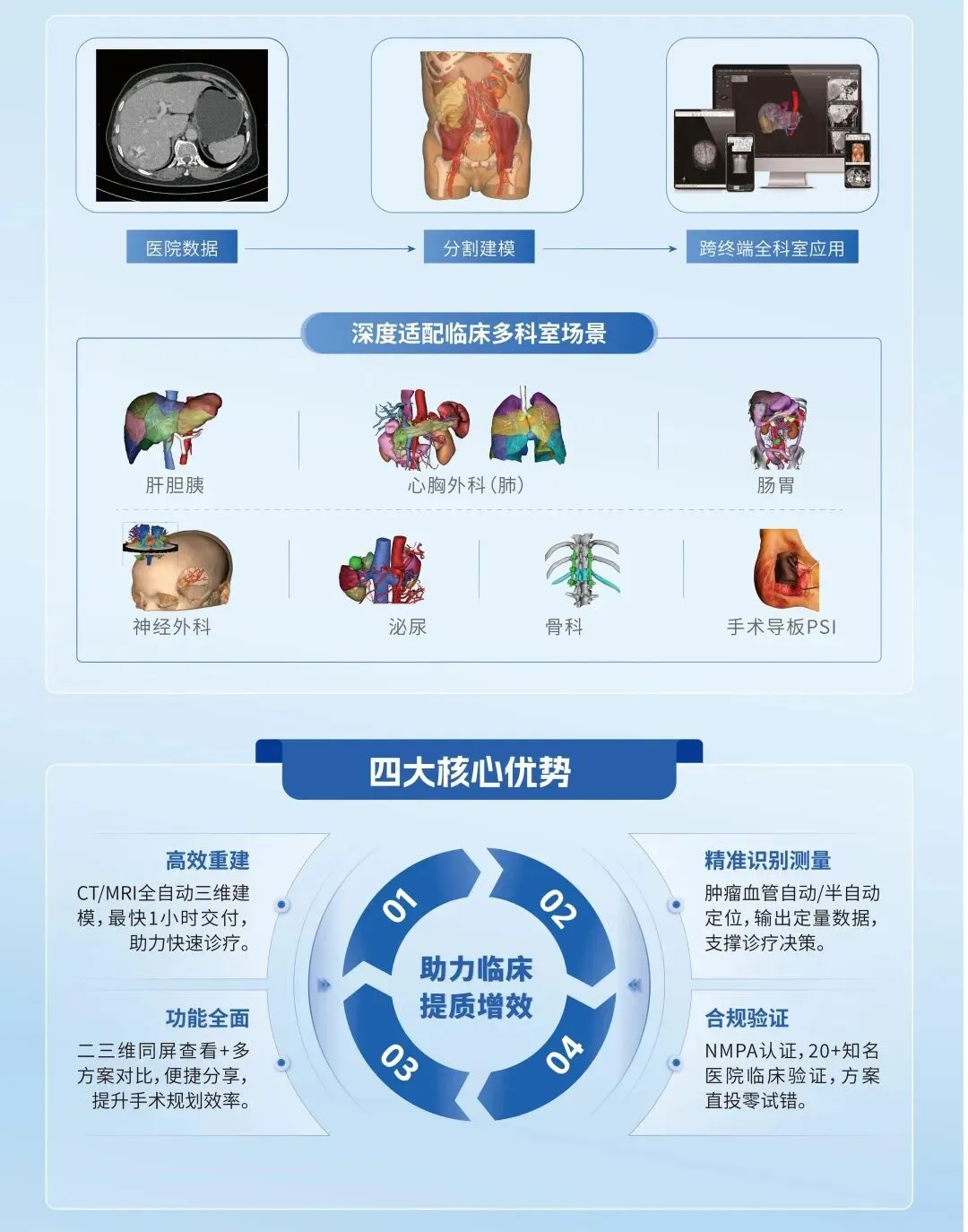 目前市场辐射长三角核心医疗圈,其中包括与中山一院联合开展核心技术研发,为浙大邵逸夫医院、广医一院等顶尖机构提供服务,同时通过线上平台推广建模服务包,构建起“科研+临床+渠道”的完善产业生态。