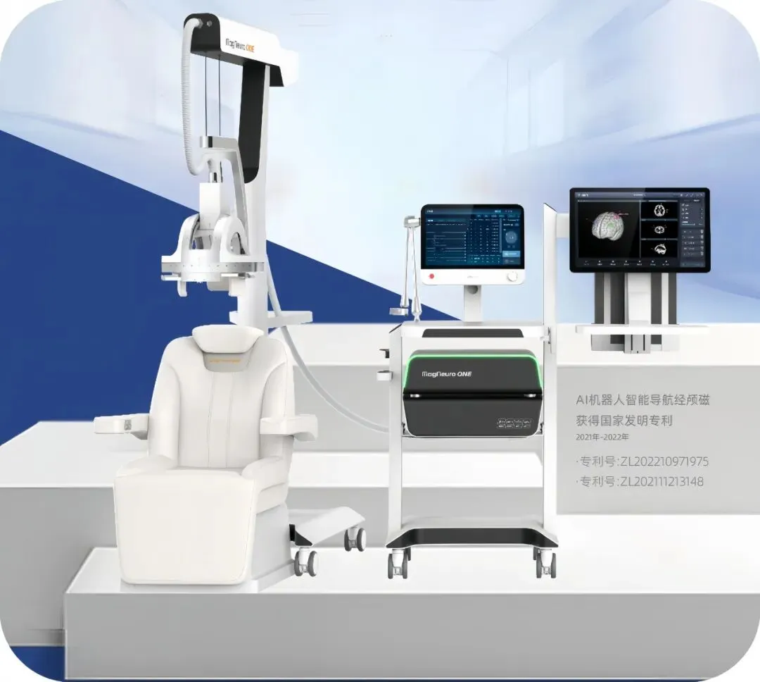 它的正式名字叫AI机器人智能导航经颅磁,技术源于2022年获得美国FDA认证的斯坦福神经调控疗法(SNT)。