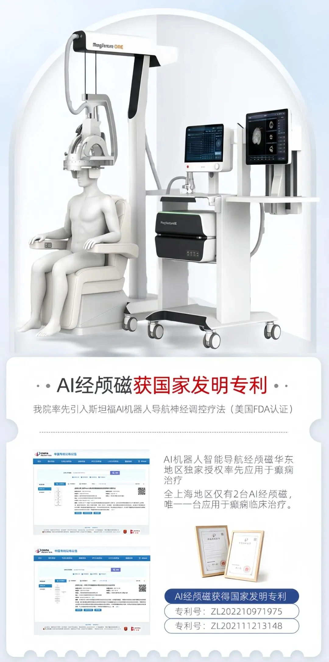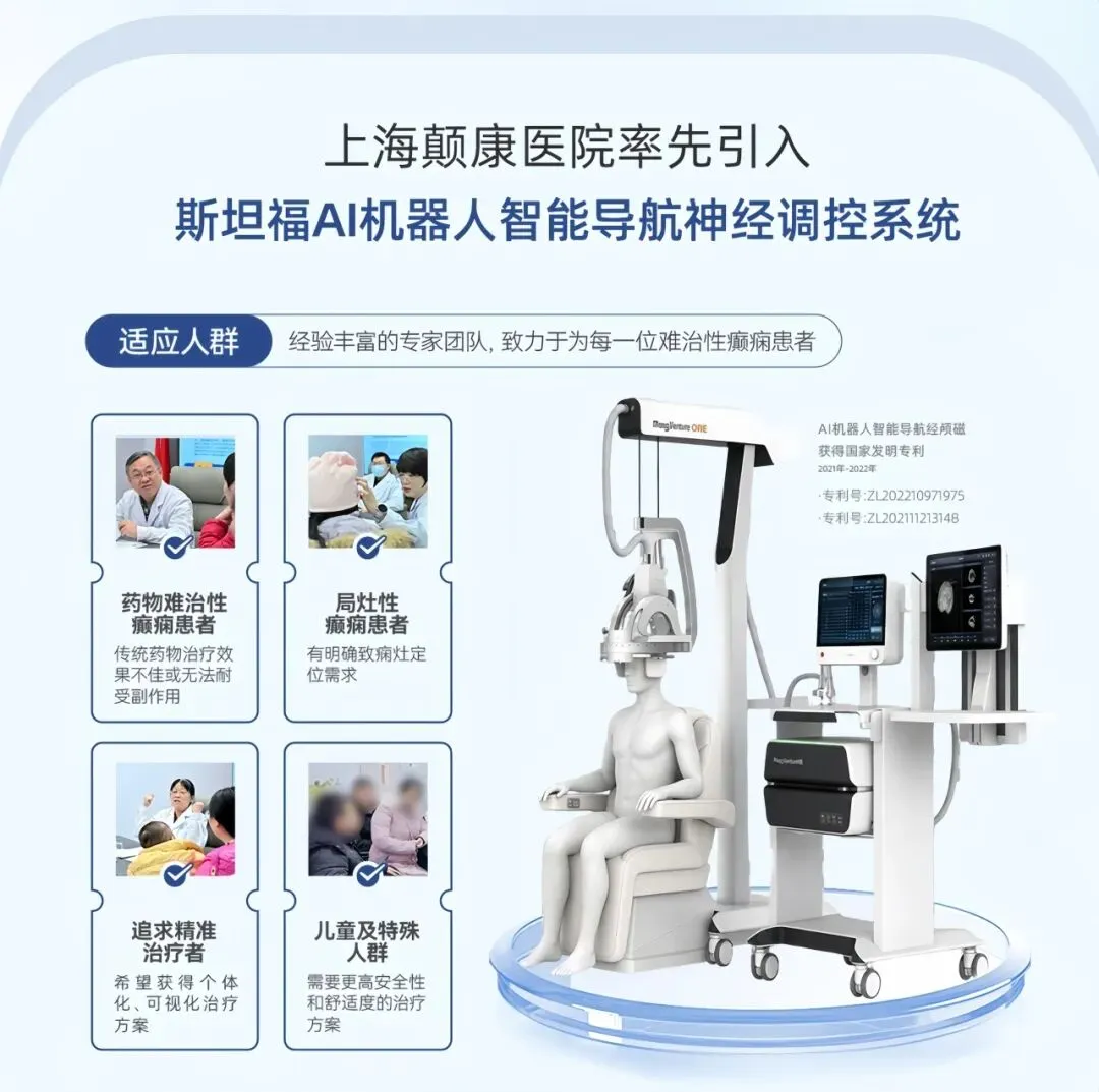 华东地区仅配置两台 AI 机器人智能导航经颅磁设备,唯一一台专项用于癫痫专科临床治疗的设备,正式落户上海颠康医院。
