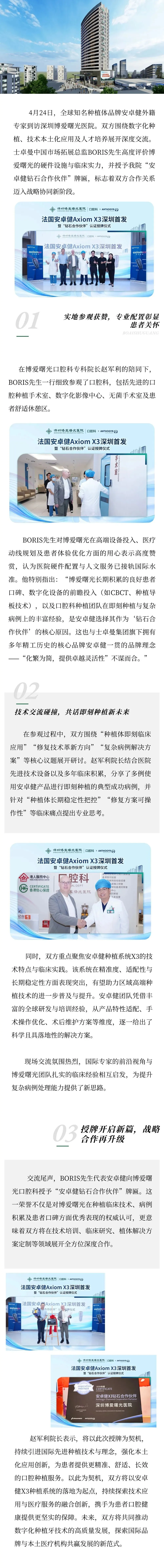 博爱曙光获授“安卓健钻石合作伙伴”,X3系统带来更高效、舒适的种植体验 *内含AI图片生成 *本文内容不作为医学诊断,仅供参考 【广告:粤(B)广[2026]第03-19-283号】 推荐阅读 01 博爱曙光 34 周年院庆丨五大科室联袂献礼,多项福利重磅上线 02 4月补水黄金季!你的水光打对了吗?(内含福利) 03 怕痛、怕等、怕折腾?即刻种植技术:把种牙的焦虑,交给技术托底 04 “0元查宫颈,1元做AI评估!妇科这波福利千万别错过! 05 胃肠镜检查前72小时“保姆级”攻略,准备到位不白跑! 本公众号所发文章中或有部分文字、图片、音频、视频等素材来自网络,如有侵权请立即联系我们处理。