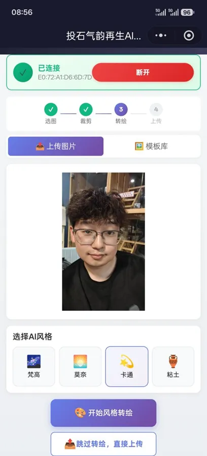 路径 B:直接上传原图 —— 点击 “跳过转绘,直接上传”,无需风格处理,推送原始照片。