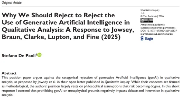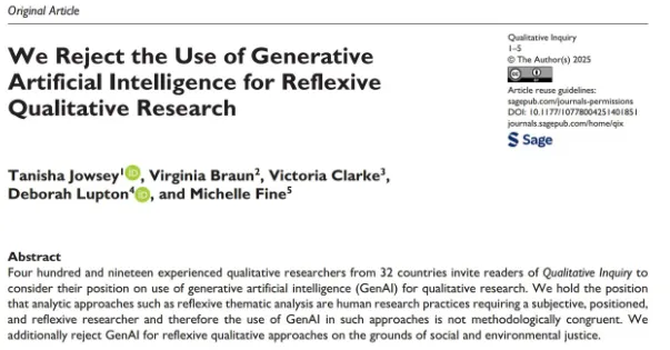 最近无意中读到《Qualitative Inquiry》(定性研究)杂志上两篇针锋相对的文章,本来以为只是定性研究领域的小众学术争论,没想到越读越觉得,这简直是一把解开所有AI困惑的钥匙。它没有直接告诉我们该用还是不该用AI,却帮我们看清了一个被所有人忽略的根本问题:我们一直在花十几年时间,把孩子培养成AI的完美竞争对手。一、一场学术争论,撕开了全社会的AI焦虑现在几乎所有人都被一个问题困住:用AI吧,怕被“废掉”,担心独立思考能力退化,最后沦为只会给AI提需求的“工具人”;不用AI吧,又怕被“淘汰”,看着同事用AI一天干完一周的活,焦虑得睡不着觉。而这场学术争论,正是这种焦虑的完美缩影。419位来自全球32个国家的资深学者联名发表公开信,旗帜鲜明地反对在反思性定性研究中使用生成式AI。他们认为,AI只是机械匹配文字符号,不懂文字背后的意义、情感和权力关系;定性研究的灵魂是人的反思性和主体性,用AI就是对学术本质的背叛。但另一位学者Stefano De Paoli随即反驳:不能把有争议的哲学假设当成绝对真理,更不能搞一刀切的禁令。AI和手工分析就像工厂生产的五斗柜和工匠手工打造的五斗柜,虽然质感不同,但基本功能都是装东西。小机构没钱、没时间做纯手工研究,AI给了更多人做研究的机会。表面上看,他们在吵AI能不能做定性研究;往深了看,他们在吵一个更根本的问题:人的价值到底是什么?一方认为,人的价值在于独特的体验、反思和意义建构,这些不可替代;另一方认为,人的价值在于解决问题,工具能帮我们更好地解决问题,就该用。这正是整个社会AI分歧的根源。二、工业界和学术界,活在两个AI世界工业界看AI,永远是结果导向的。AI客服只要能解决99%的用户问题,没人关心它“懂不懂”用户的愤怒;AI写的代码只要能跑通、没bug,没人关心它“懂不懂”背后的逻辑;AI做的设计只要能通过甲方验收,没人关心它“懂不懂”美学。工业界的终极恐惧,是“不用AI会被淘汰”——竞争对手都在降本增效,你不用,就会破产、被裁员。而学术界看AI,永远是过程导向的。做研究的意义,不只是得到一个答案,更是思考和探索的过程本身。AI写的论文哪怕逻辑再严密、数据再扎实,只要没体现出研究者的反思和主体性,在很多学者看来就不是真正的学术论文。学术界的终极恐惧,是“用了AI会失去自我”——如果数据分析、文献综述、论文写作都由AI完成,学者的价值在哪里?如果研究变成输入问题、输出答案的流水线,学术的意义又在哪里?这就是为什么工业界觉得学术界“矫情、保守、脱离实际”,而学术界觉得工业界“肤浅、功利、没有底线”。他们站在完全不同的坐标系里,用完全不同的尺子衡量AI,自然永远吵不出统一的答案。三、教育的错位:把孩子训练成“答案匹配器”关于AI未来能做什么、不能做什么,至今没有定论。有人说AI永远只能做符号匹配,无法真正理解意义;也有人说再过十年,AI就能拥有真正的意识和创造力。两边都有顶尖学者站台,吵了几十年也没分出胜负。但有一件事,是没有任何争议、板上钉钉的铁一般的事实:我们现行的教育体系,几十年来一直在倾尽全力,把学生训练成“高效找标准答案的机器”。这和AI的基本工作机制,简直一模一样。我们可以用“中文屋”思想实验来理解:把一个完全不懂中文的外国人关进小黑屋,给他一本超级厚的英文规则手册,上面只写“看到什么样的中文符号,就抄下对应的中文符号”,全程不解释任何字的意思。外面的人递进去问题,他照着手册翻出答案递出来,外面的人会觉得他中文说得极好,但他其实一个字都不懂。这就是我们的教育一直在做的事。我们不教学生“为什么”,只教他们“看到什么题,就写什么答案”。语文阅读理解有唯一的标准答案,哪怕作者本人的理解和答案不一样也不行;作文有固定的模板和套路,写得越贴近范文得分越高;理科的解题步骤必须和课本保持一致,哪怕用更简便的方法得出正确答案也会被扣分;就连历史、政治这类学科,答题观点也不能有丝毫偏离。我们花了十二年,甚至十六年的时间,把一个个鲜活的孩子,打磨成了一个个精准的“答案匹配器”。谁能更快、更准地从大脑里调出对应的标准答案,谁就是好学生,就能考高分、上名校、拥有光明的前途。四、破局:从“答案匹配”到“意义建构”现在,AI出现了。它能比我们更快、更准地匹配答案,甚至能生成我们从未想过的答案。于是我们慌了:我们花了十几年培养的能力,AI几秒钟就能做到,那我们还有什么价值?问题的关键,不在于AI太强,而在于我们培养人的方式,从一开始就错了。我们一直在培养AI的“竞争对手”,而不是AI的“驾驭者”。真正的破局之道,不是拒绝AI,也不是盲目拥抱AI,而是重新定义人的价值。人的价值,不在于“找到标准答案”,而在于“提出好问题”;不在于“匹配已有知识”,而在于“建构新的意义”;不在于“执行固定流程”,而在于“反思和创造”。我们需要培养的,不是“答案匹配器”,而是“意义建构者”。是能提出“为什么”的人,是能反思“这样做对吗”的人,是能创造“原来还可以这样”的人。五、结语这场学术争论,没有告诉我们该用还是不该用AI,但它让我们看清了一个事实:我们一直在用培养AI的方式培养人,现在AI来了,我们才发现自己走错了路。与其纠结“用AI会不会被废掉”