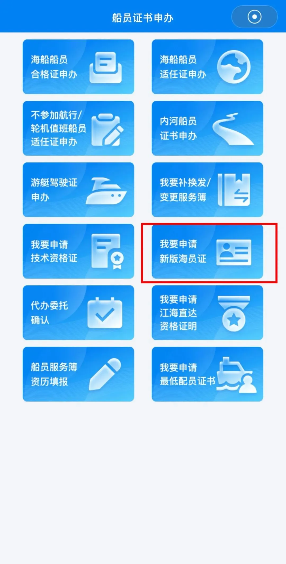 若已完成海员证信息采集(一经采集,十年有效),只需跟着以下步骤即可完成海员证换证申请: